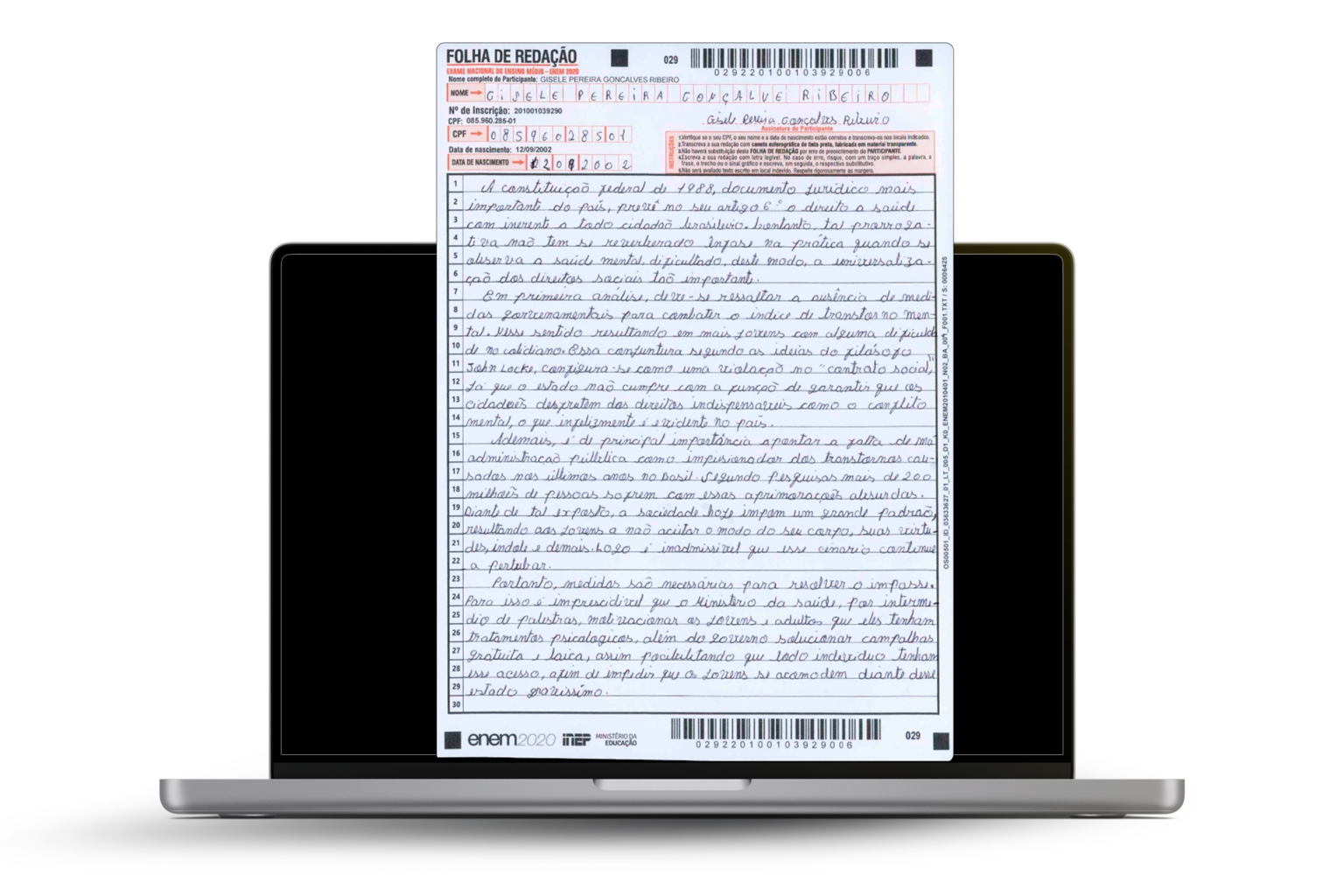 E o melhor: não usamos inteligência artificial — cada redação é analisada de forma individual, com feedback detalhado para você evoluir de verdade.