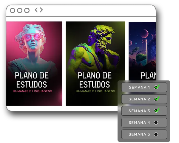Nosso plano de aula é semanal e com o conteúdo elencado de forma lógica para facilitar a visualização do seu progresso.