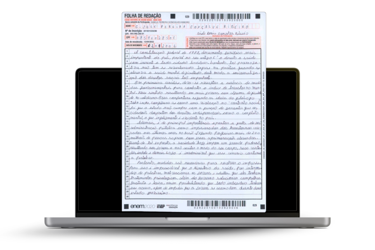 Sua redação será analisada por profissionais experientes que conhecem os critérios dos examinadores. Método baseado em propostas reais, orientações personalizadas e sessões exclusivas de tira-dúvidas. Metodologia validada que já garantiu notas 1000 na Fuvest, Unesp, Unicamp e ENEM.